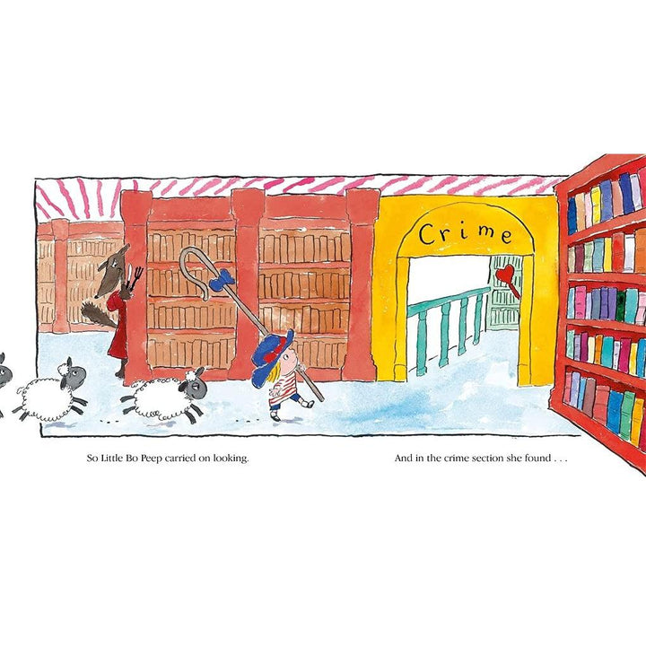 Little Bo Peep goes to the library to look for a book called How To Find Sheep. But there are other characters browsing the shelves too! Will she find those troublesome sheep before the Big Bad Wolf finds HER?