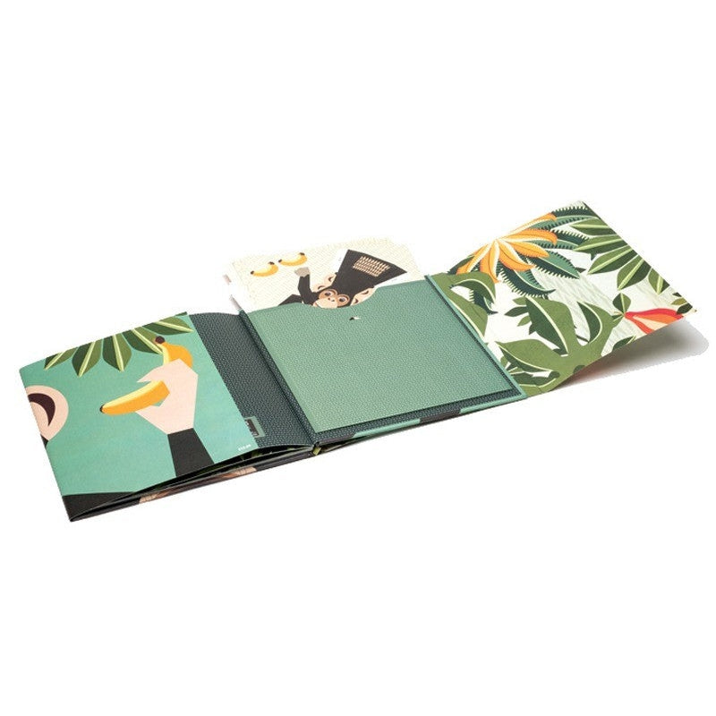 With two spreads dedicated to each animal, adults will be able to read the short playful rhyme on each spread to children and look at the bright illustrations to teach them about the animal and its environment. Children will then be able to pop out the paper animals from the perforated pages contained in a pocket in the back of the book and create 3D figures simply by folding and adding a few dabs of glue. The inside of the dust jacket is printed full colour with a graphical representation of the animals’ environment. Children have the option of using this as a backdrop to create a jungle scene, and there are also accessories to make and add to the scene. This activity will help develop their motor skills and encourage imaginative play and conversation.