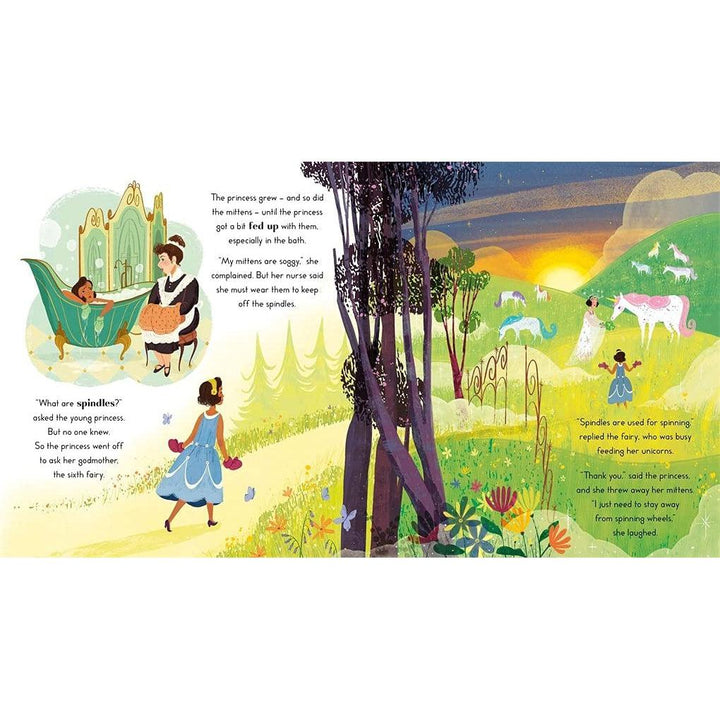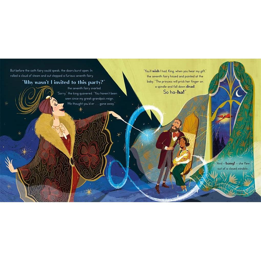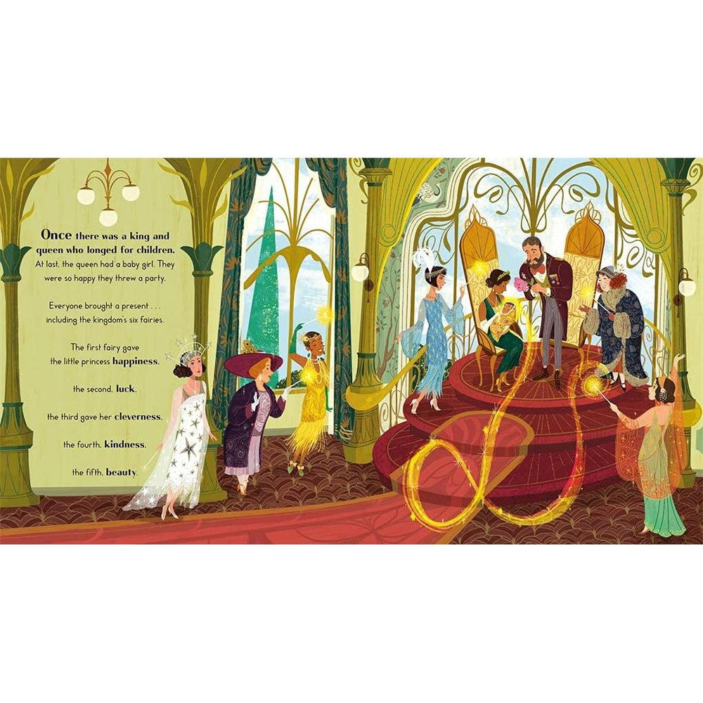 Once upon a time a baby princess was born. The kingdom's fairies blessed her with happiness, luck, cleverness, kindness and beauty . . . but one wicked fairy was angry at having been left out of the celebration and placed a wicked curse on the little princess. On her sixteenth birthday, the princess would prick her finger and fall into a deep sleep for a hundred years . . . until a handsome prince would wake her with true love's kiss.