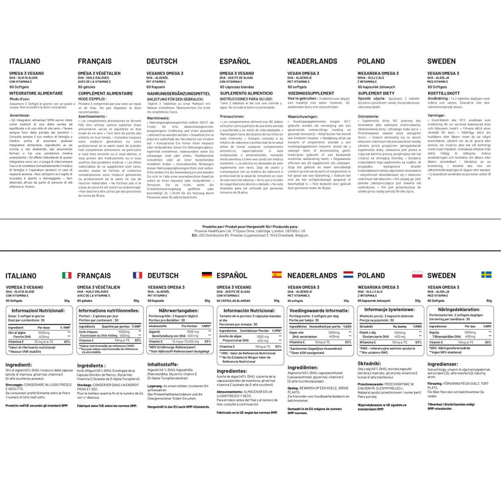 Prowise Vegan Omega-3 DHA from Algae Oil | 60 Softgels with Vitamin E | 400mg DHA + 10mg Vitamin E | 100% Plant-Based | Supports Brain, Eye, and Joint Health | Pure & Sustainable Sourced