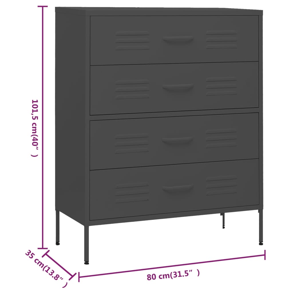 Chest of Drawers Anthracite 80x35x101.5 cm Steel-vidaXL-Yes Bebe