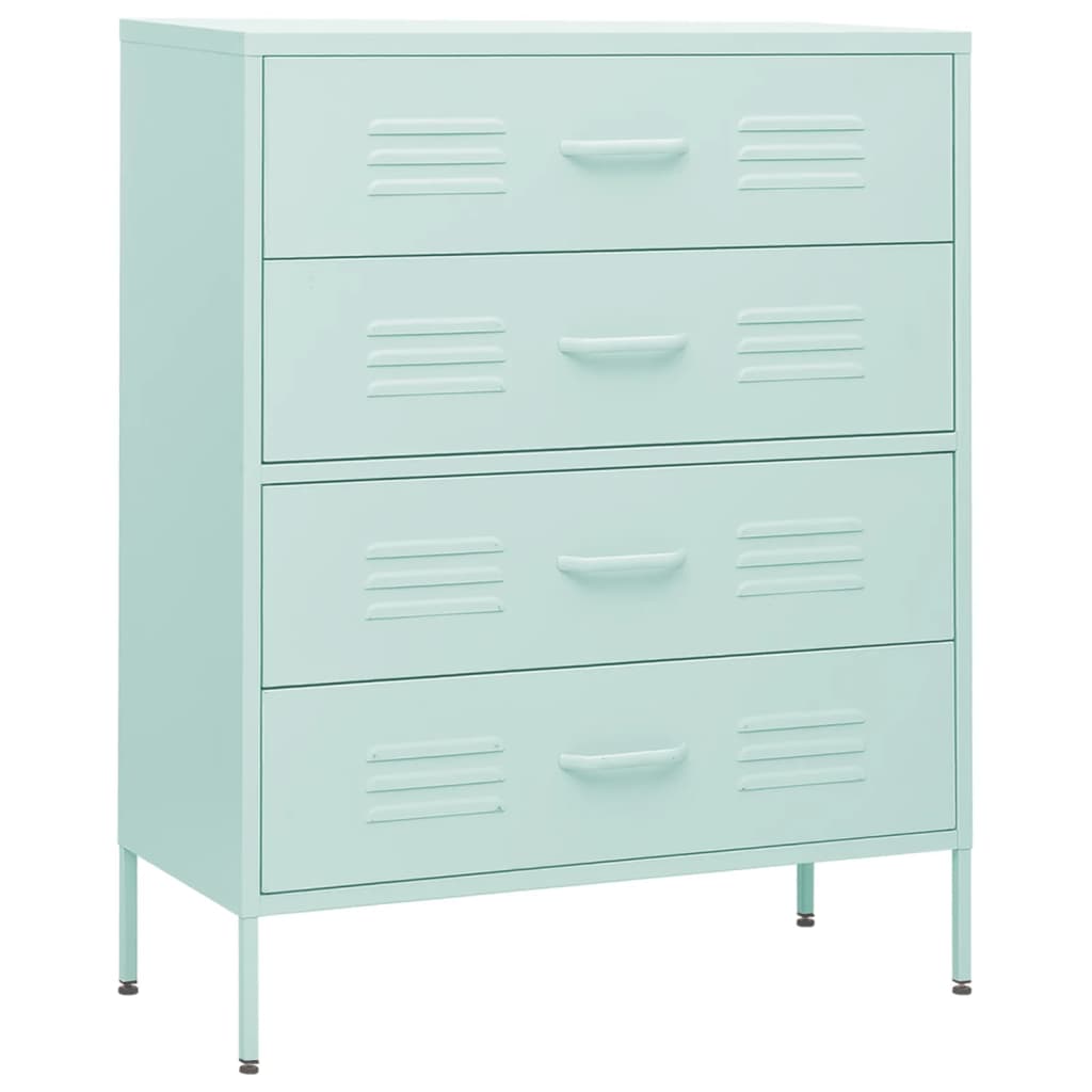 This chest of drawers with practical design is a real eye-catcher for your home decor. This side cabinet, featuring a steel construction, is sturdy and durable. There are levellers on the bottom to adjust the height according to your needs. The drawers can be fully extended and are ideal for keeping all kinds of smaller items organised and within reach. Drawers with ballbearing runners ensure smooth opening and closing, even under increased load.