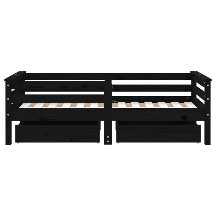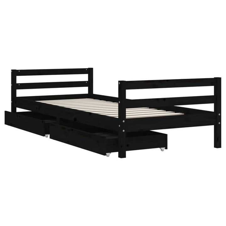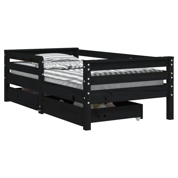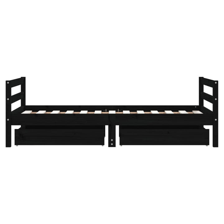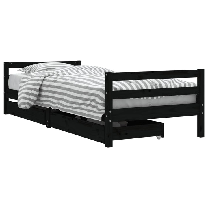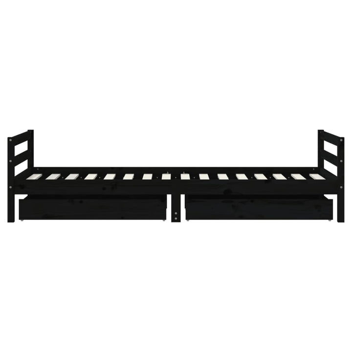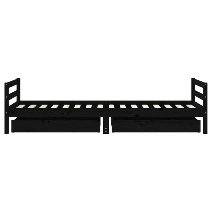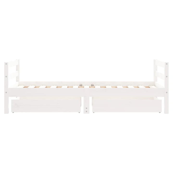 Dream a dream with this wooden kids bed frame. Featuring an elegant and timeless design, it is the perfect choice for your kids! Solid pine wood: The kids bed frame is made from solid pine wood. Solid pine wood is a beautiful natural material. Pine wood has a straight grain, and the knots give the material its signature, rustic look.Sturdy slats: The bed for kids has wooden slats for firm support, ventilation and stability.Storage drawer: The included storage drawers provide ample space for storing small toys, clothing and bedding, keeping the room tidy and clean.Functional headboard and footboard: The headboard and footboard of the toddler bed keep your mattress in place.Considerate design: The height of the kids single bed is designed to be low to the ground, making it easy for your child to get in and out of bed. Good to know:A mattress is not included with this bed. We do offer a various selection of mattresses. You can check our shop for a matching mattress.