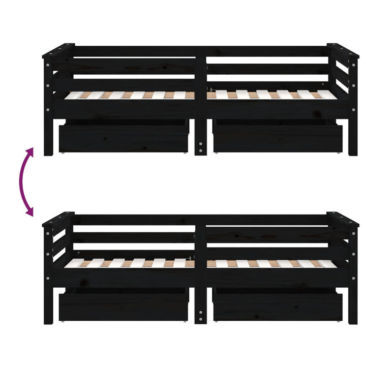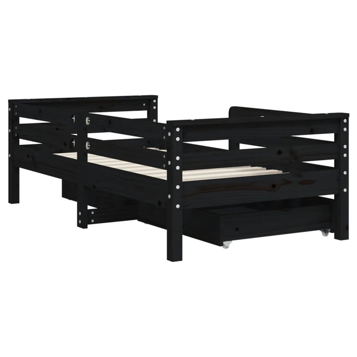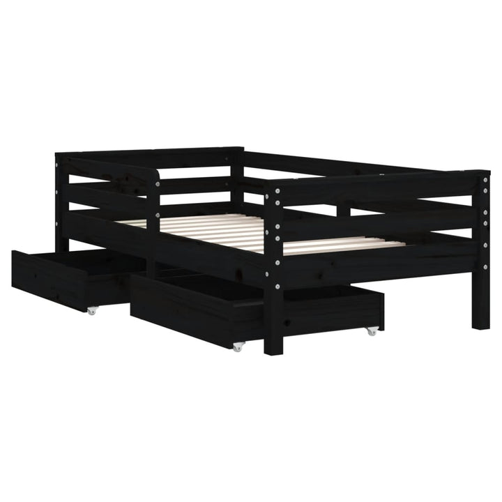 Kids Solid Wood Pine Bed Frame with Drawers