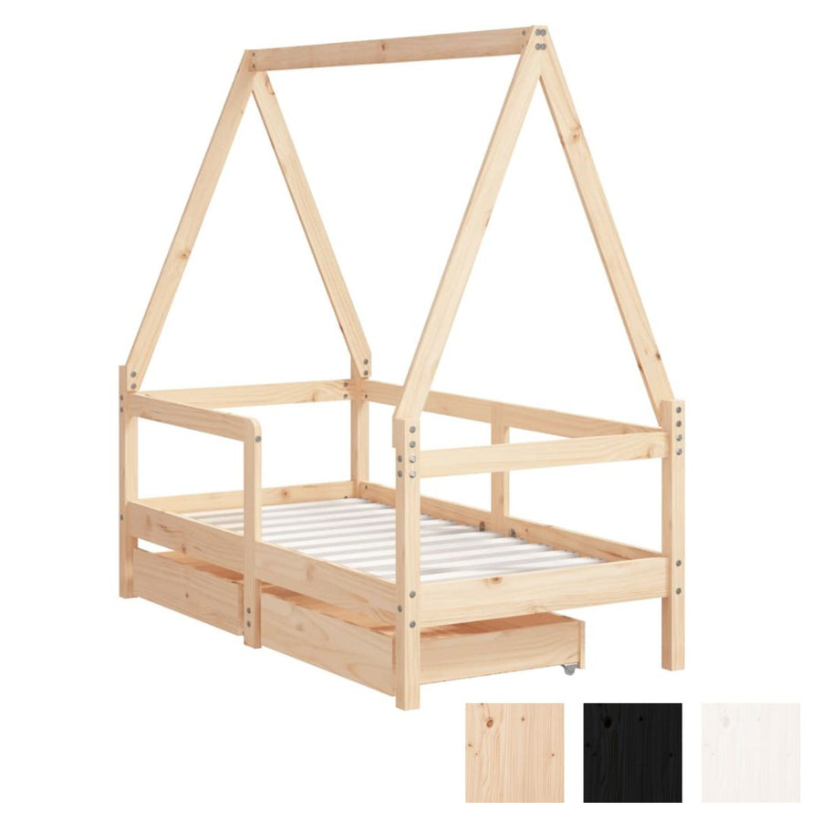 - Solid pine wood: The kids bed frame is made from solid pine wood. Solid pine wood is a beautiful natural material. Pine wood has a straight grain, and the knots give the material its signature, rustic look.