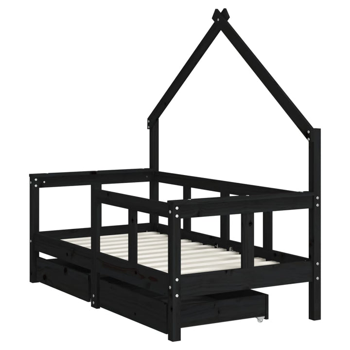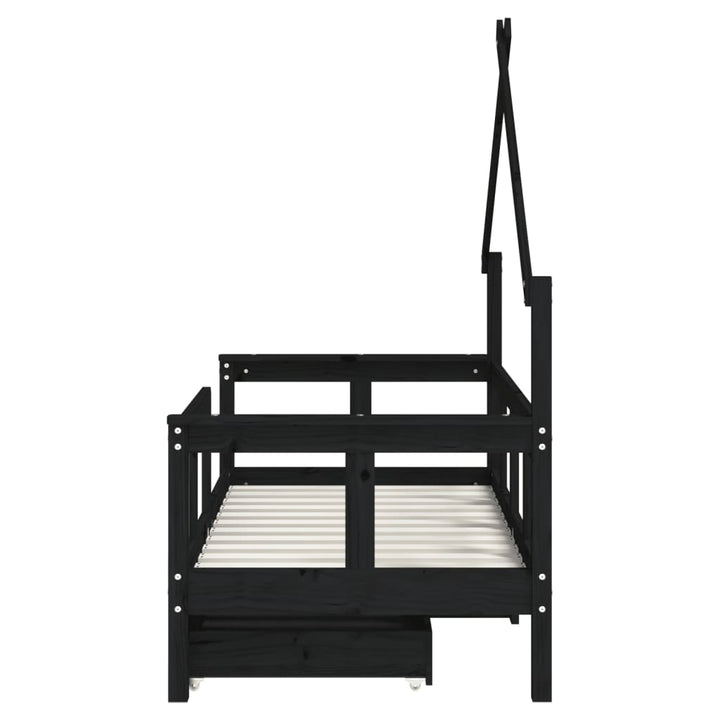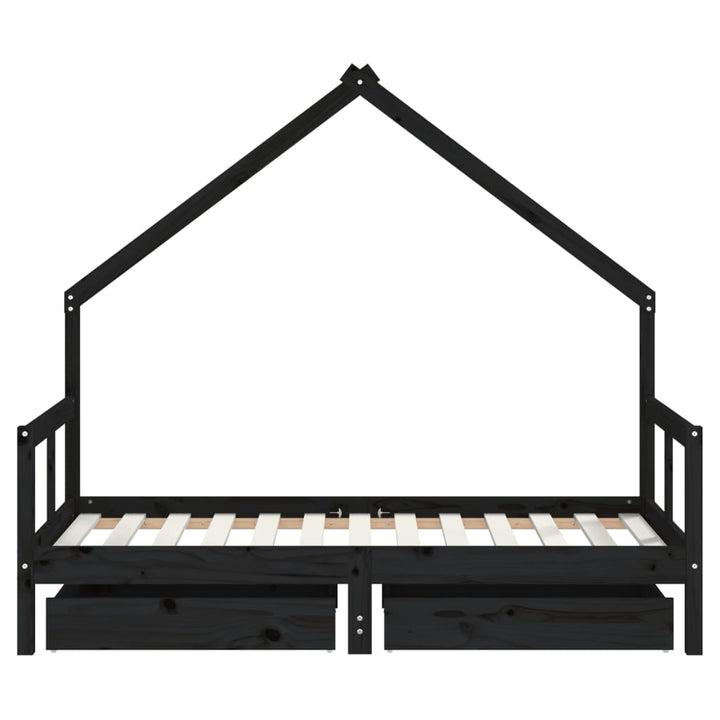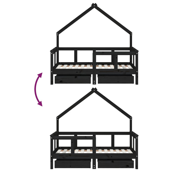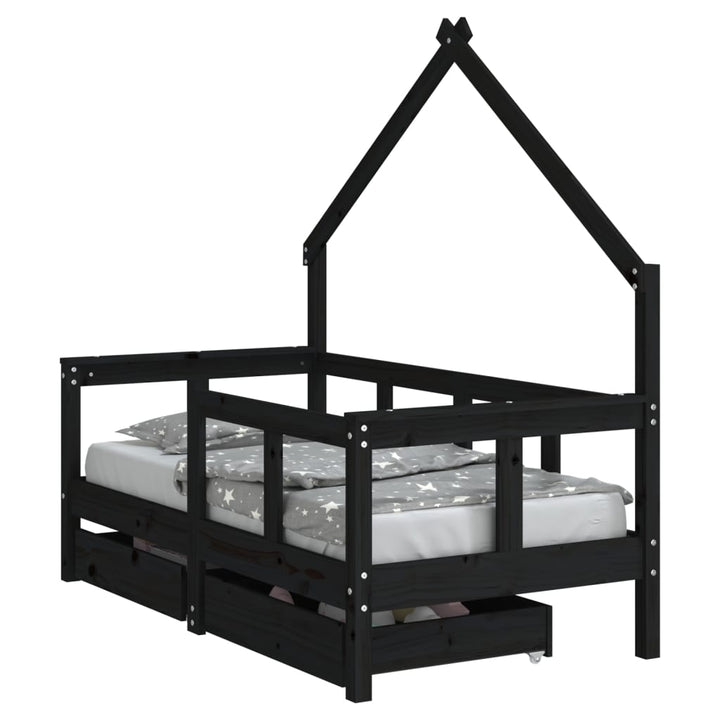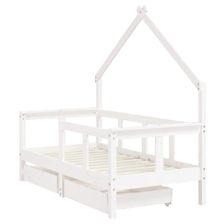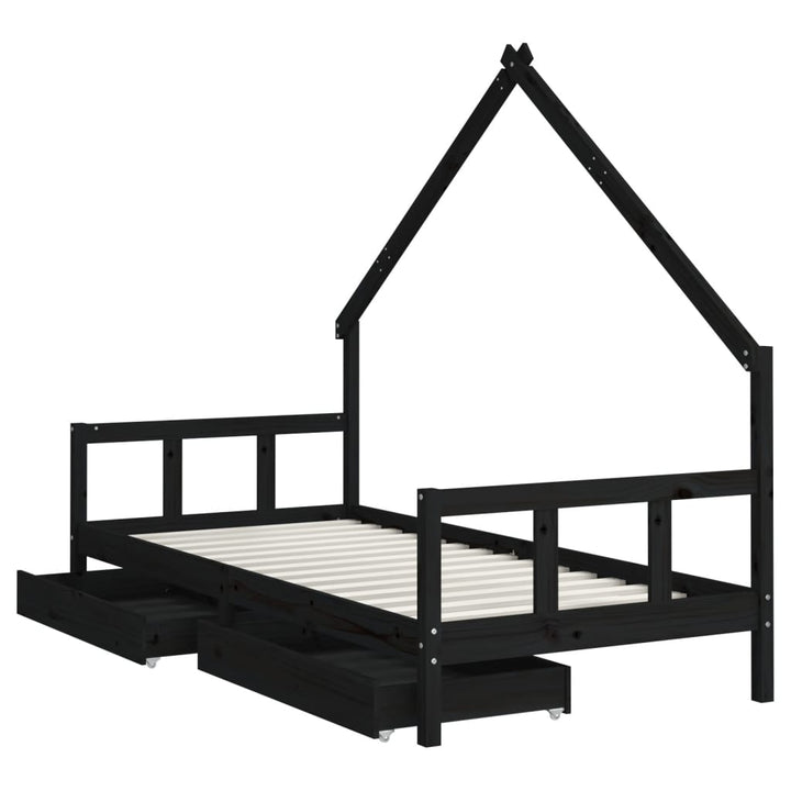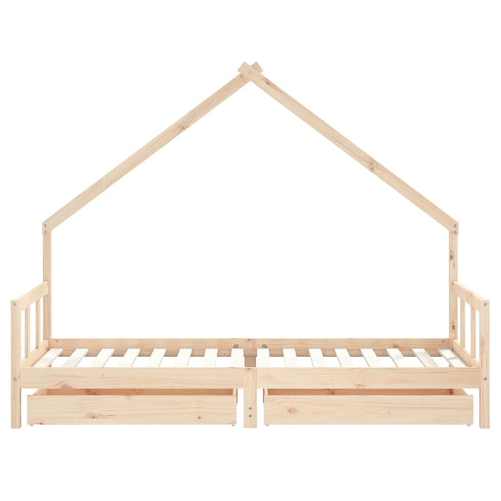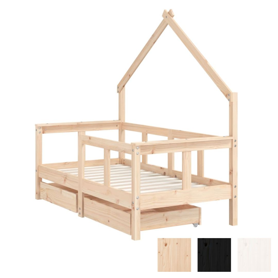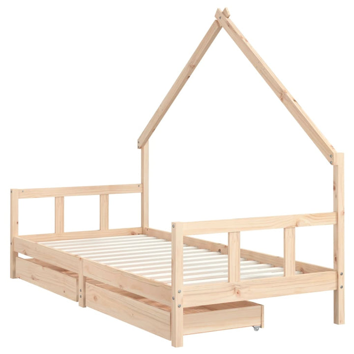 Kids Solid Wood Pine Bed Frame with Drawers