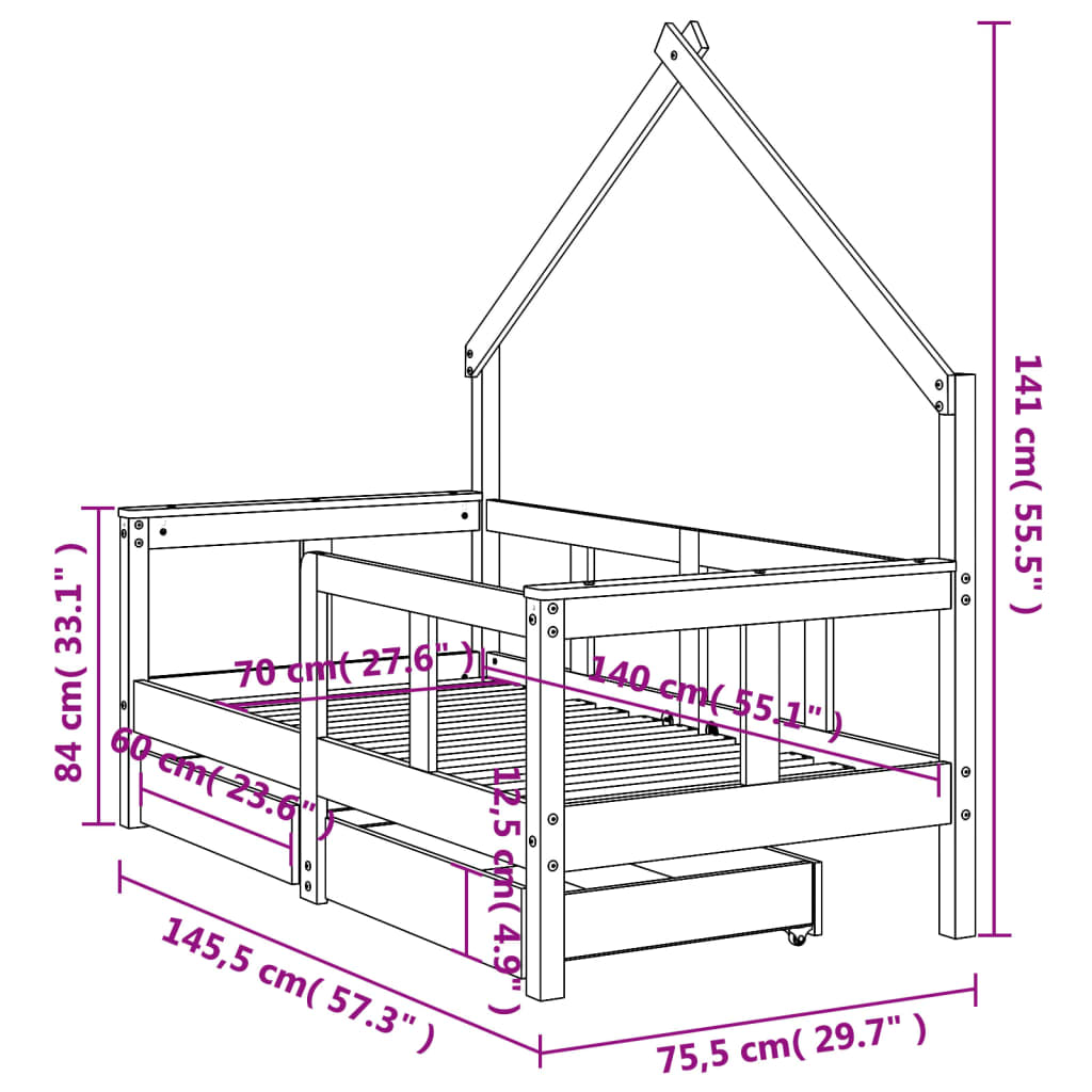 • Solid pine wood: The kids bed frame is made from solid pine wood. Solid pine wood is a beautiful natural material. Pine wood has a straight grain, and the knots give the material its signature, rustic look.