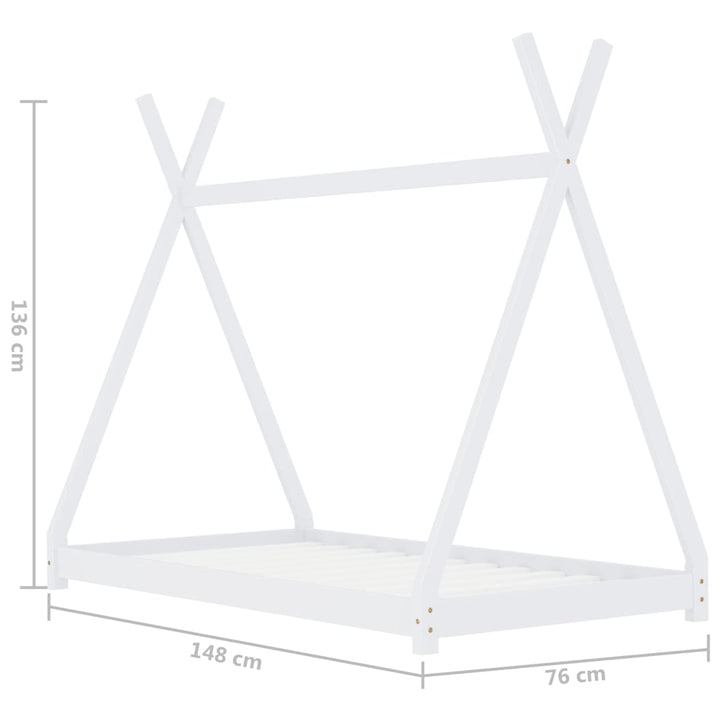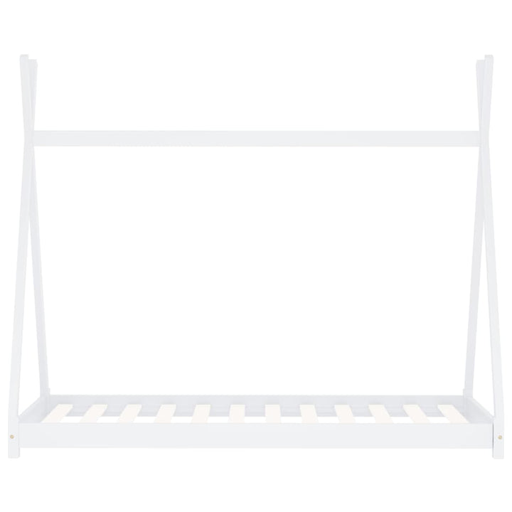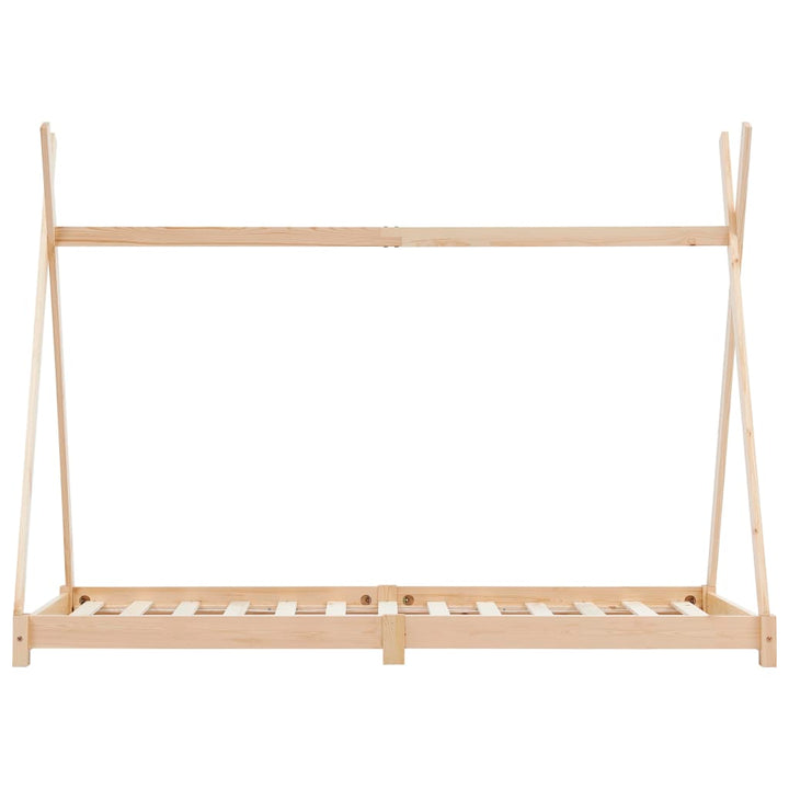 Create a cozy and imaginative setting for your child's bedroom with our Kids Triangular Bed Frame Solid Pine Wood. This extraordinary bed frame, made of solid pine wood for exceptional durability, boasts a novelty crossover framework inspired by the classic tipi tent design. Hang bed curtains to provide your child with a private refuge for play or rest. The strong slats offer exceptional comfort and support, while easy assembly ensures quick use. A mattress and curtains are not included, but check our shop for the perfect mattress to complete the look.