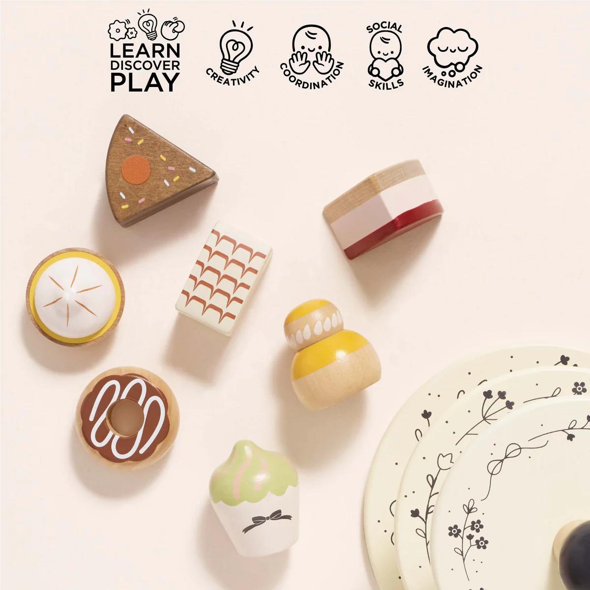 This cake stand set is not only visually stunning but is also made from sustainably-sourced wood and is completely plastic free! It is decorated in non-toxic water-based or stained paints for safe play too. This fun-filled set brings together elegance, imagination, role play and fun in any home!