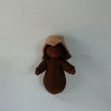 Environmentally friendly materials: Wool felt, wool, cotton interlock knit, cotton thread, pipe cleaner wire, wood, recycled paper, non-toxic textile paint.