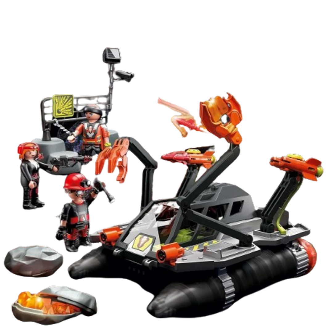 Explore the Dino Mine with the powerful Dino Rise Comet Corp. Demolition Drill! With its crawler drive and lateral drill heads, Ludmilla and Ralph can easily navigate through tunnels and collect energy stones. Equipped with gripper arms, this drill opens up boulders and stores the valuable stones in its tray.
