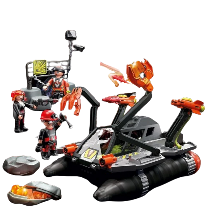 Should Team Dino Rise approach, Ludmilla and Ralph will defend themselves with the two functioning double cannons. The set features the Comet Corporation villains Ludmilla and Ralph as well as a miner, a drill vehicle with gripper arms, four energy stones, two stones for hiding energy stones, two double cannons, four projectiles and many more extras for action-packed dino adventures.