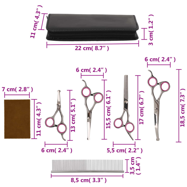 5 Piece Dog Grooming Scissors Set Stainless Steel