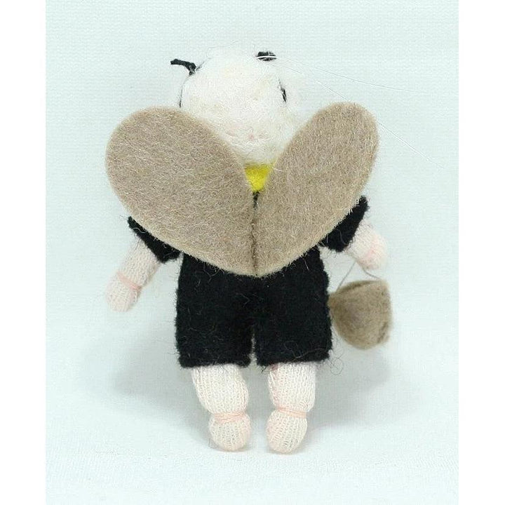 Environmentally friendly materials: Wool felt, wool, cotton interlock knit, cotton thread, pipe cleaner wire, wood, recycled paper, non-toxic textile paint.