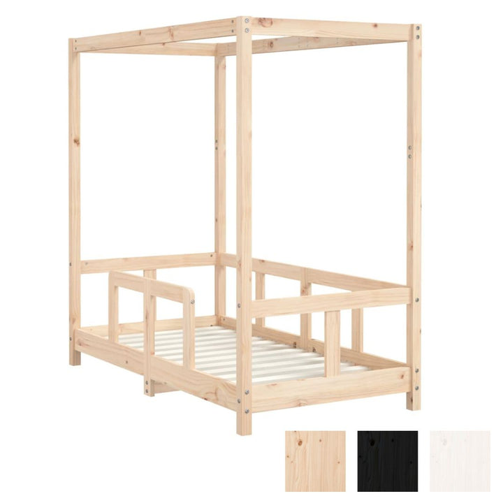 - Solid pine wood: The kids bed frame is made from solid pine wood. Solid pine wood is a beautiful natural material. Pine wood has a straight grain, and the knots give the material its signature, rustic look.