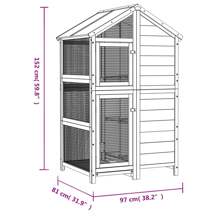 This large bird house is ideal to be used outdoors for keeping your birds safe from predators. Solid pine wood: Solid pine wood is a beautiful natural material. Pine wood has a straight grain, and the knots give the material its signature, rustic look.Wire mesh: The wire mesh of the bird house for garden helps prevent mischief and unexpected accidents. It also allows you to observe the birds daily and guarantees your birds a wide field of view and enough fresh air.Water-resistant roof: The green water-resistant roof of the parrot house provides your birds with a warm, dry and comfortable environment.Easy cleaning: A pull-out tray at the bottom and doors of the outdoor aviary makes cleaning easy.