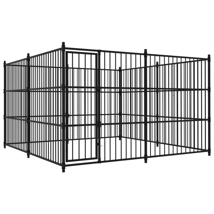 Provide safety, security and comfort for your puppy with this outdoor dog kennel. This versatile, heavy-duty dog house features multiple uses: playing, exercising, training, or simply keeping your dog safe. It will be the perfect play paradise for your furry friends! This kennel provides ample exercise space while the steel bar walls help prevent mischief and unexpected accidents while enabling ventilation. Thanks to the sturdy steel construction in powder coating, this quality dog kennel is durable and built to last. Additionally, the hinged door has a lockable latch system which ensures extra security and safety for your dogs. This kennel is easy to assemble.