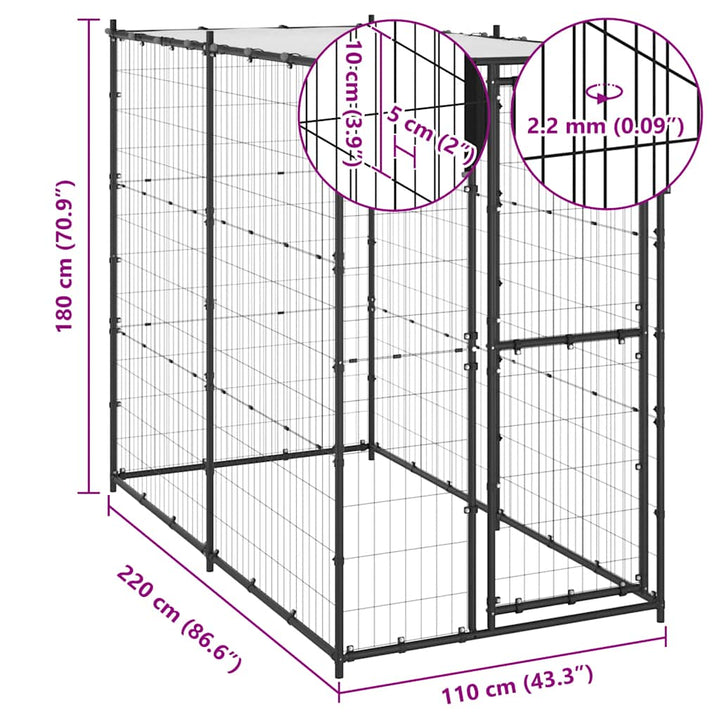 This versatile dog kennel features multiple uses: playing, exercising, training, or simply keeping your dog safe. It will be the perfect play paradise for your furry friends! This dog kennel provides ample exercise space. The mesh all around helps prevent mischief and unexpected accidents while enabling ventilation. Thanks to the sturdy powder-coated steel construction, this dog kennel is durable and built to last. Made of PE, the included top canopy is water-resistant and UV-resistant. The hinged door with a lockable latch system ensures extra security and safety for your dogs. Good to know:To prevent damage from heavy snow buildup, we recommend clearing the roof regularly during winter.